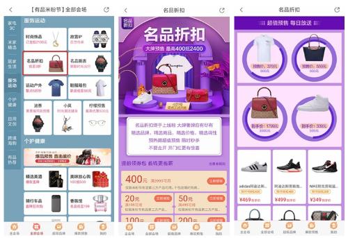 小米有品“名品折扣”頻道入口及頻道詳情頁面(圖片來源:36 氪自小米有品 App 截取)