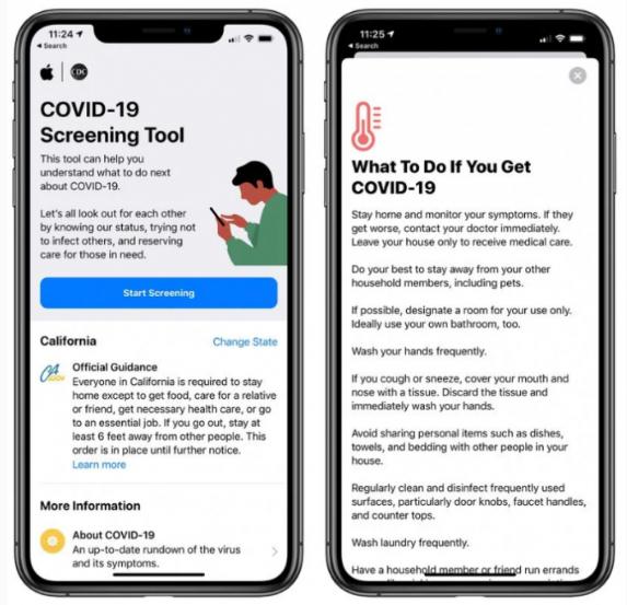 據(jù)外媒 Macrumors 報道,蘋果公司周四更新了其 COVID-19 篩查 App,旨在幫助人們保持知情,并采取適當(dāng)?shù)牟襟E來限制新冠病毒的傳播。此次更新的內(nèi)容包括為醫(yī)護(hù)人員提供的更新建議,以配合美國疾病預(yù)防與控制中心(CDC)的指導(dǎo)方針,以及如果民眾已經(jīng)暴露于 COVID-19 病毒,則需要隔離的最佳措施。