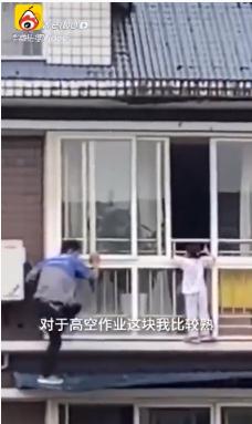 危急之下,正在服務(wù)途中的胡云川看到這一幕,飛奔過去,從 5 樓住戶家的陽臺(tái)徒手攀爬至 6 樓,僅僅用時(shí)十幾秒,將女童成功解救。救人后,胡云川沒有多說就轉(zhuǎn)身離開。