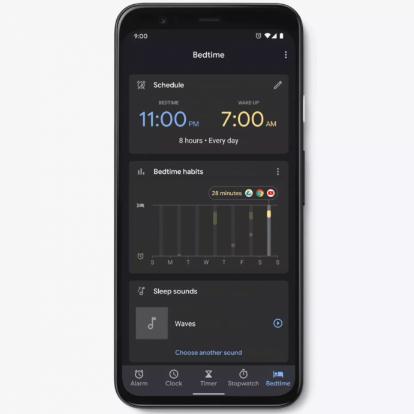 另外,谷歌還為鬧鐘應(yīng)用帶入了一個睡覺模式。根據(jù)谷歌在博客帖子中介紹了解到,當用戶入睡的時候,手機會進入靜音狀態(tài)并限制感染,如果用戶在本該睡覺的時間還在玩手機那么該模式將會提供一張顯示用戶玩手機的時間和在此期間使用的應(yīng)用的信息截圖。