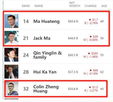 不過(guò),值得注意的是三人減持套現(xiàn),但他們依然是中國(guó)最富三人組。在福布斯富豪榜上,二馬分別為中國(guó)第一富和第二富,黃崢稍稍落后位居中國(guó)富豪榜第五。