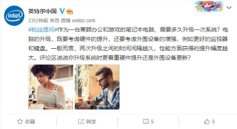 在 Intel 中國(guó)最新的微博分享中,就回應(yīng)了粉絲提問(wèn)“作為一臺(tái)兼顧辦公和游戲的筆記本電腦,需要多久升級(jí)一次系統(tǒng)?”