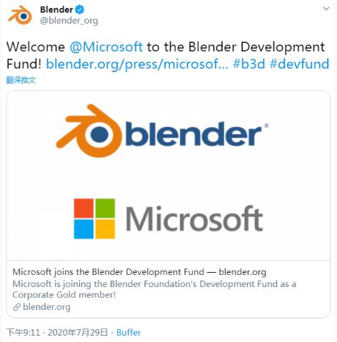 去年有兩家知名公司(育碧和 AMD)先后加入了 Blender 基金會以更好地協(xié)助開發(fā) Blender 項目以及提供資金?,F(xiàn)在,微軟為了表達對 Blender 的支持,也以企業(yè)黃金會員的身份加入了 Blender 基金會的 Development Fund 項目。