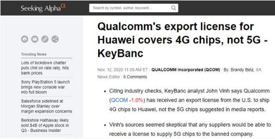 北京時(shí)間周五凌晨有媒體報(bào)道稱,華爾街投行 Keybanc 分析師 John Vinh 表示,高通已獲得向華為出口 4G 芯片的許可證。