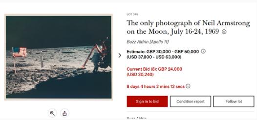 報道稱,本次拍賣將在佳士得拍賣行進行。佳士得表示,阿姆斯特朗的登月照片僅是本次拍賣的一部分,此次拍賣還包括大約 2400 張來自美國航空航天局的珍貴照片。