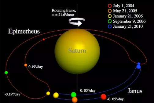 兩顆行星可能會(huì)以一種不尋常的方式“共軌”,在所環(huán)繞的恒星周?chē)蚕硗粎^(qū)域,也就是“馬蹄形軌道”。在這種情況下,兩顆行星都不會(huì)圍繞恒星做圓周運(yùn)動(dòng),而是在恒星周?chē)纬神R蹄形軌道。兩顆行星的軌道彼此相對(duì),就像一個(gè)圓環(huán)裂開(kāi)的兩半。