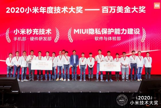 1 月 7 日,2020 年小米百萬美金技術(shù)大獎揭曉,經(jīng)過小米集團(tuán)技術(shù)委員會多輪評選,兩支年輕的工程師團(tuán)隊脫穎而出:手機(jī)部小米秒充團(tuán)隊、軟件與體驗部的 MIUI 隱私保護(hù)團(tuán)隊,他們雙雙贏得這項技術(shù)大獎(價值 100 萬美金的小米受限股)。