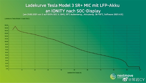 結(jié)果顯示,特斯拉最近的 2021.4.10 固件更新版本,徹底解放了磷酸鐵鋰電池的充電功率。該版本軟件去除了之前磷酸鐵鋰車型充電的“功率帽”。