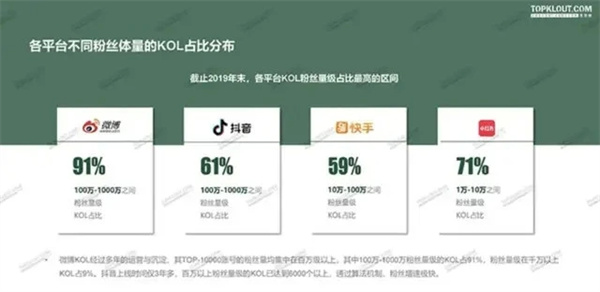 首先,腰部KOC把控著小紅書絕大部分聲音,導(dǎo)致小紅書無法孵化出薇婭、李佳琦、辛巴、羅永浩這種頂流KOL。據(jù)統(tǒng)計,微博和抖音KOL的粉絲量級都是100-1000萬之間的級別為主;快手KOL以10-100萬之間的粉絲量級為主。
