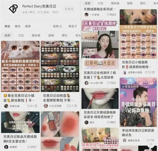 對于品牌來說,去中心化的模式幫助小紅書積累了大量中腰部的KOC,便于品牌進行冷啟動。小紅書最成功的案例就是完美日記。這個國產(chǎn)品牌在初期靠著小紅書上的大量投放,成功樹立起高性價比、國貨之光的品牌形象。自2017年底開始,到今年4月,相關(guān)筆記超過了31萬篇。小紅書的價值也被逸仙電商創(chuàng)始人稱為“無可比擬的”。同樣靠小紅書實現(xiàn)冷啟動的國產(chǎn)品牌還有元氣森林、鐘薛高、小麥歐耶等等
