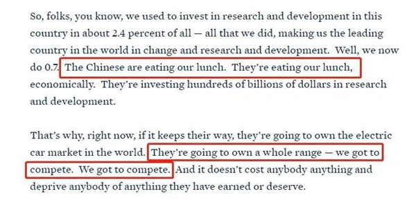當(dāng)?shù)貢r(shí)間5月6日,美國(guó)總統(tǒng)拜登向聽(tīng)眾大講特講他的“美國(guó)就業(yè)方案”。拜登稱,中國(guó)人正在搶走我們的飯碗。