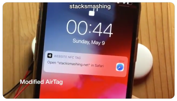 可是,就在AirTag正式發(fā)售的第 10 天(AirTag 于 4 月 30 日正式發(fā)售),即 5 月 9 號蘋果就被“打臉”了:一位德國安全研究人員 Stack Smashing 發(fā)推表示他能“入侵 AirTag 的微控制器”,還能修改其丟失模式下的NFC URL,而這個 URL 可被黑客用于網(wǎng)絡(luò)釣魚或其他任何入侵操作!
