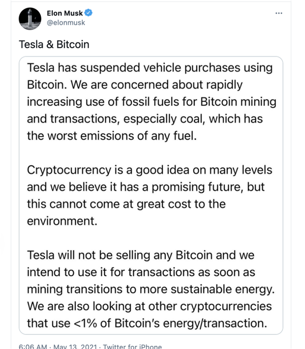 此次比特幣暴跌,從而帶動(dòng)加密幣大跌,多數(shù)分析人士將直接原因歸于特斯拉創(chuàng)始人埃隆 馬斯克的“叛變”。