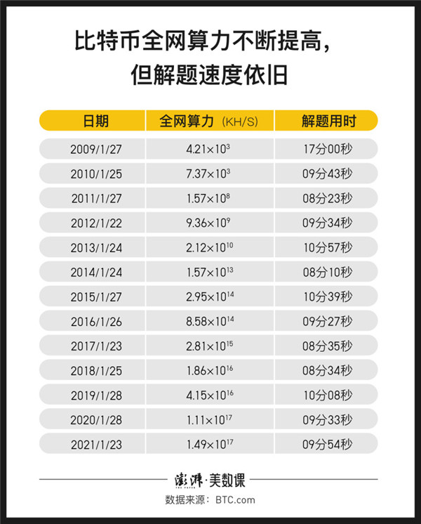但解題時(shí)間并沒有隨著整體算力的增加而減少,因?yàn)轭}目的難度是隨著算力而變動(dòng)。全網(wǎng)算力的迅速提升,挖礦難度也開始大幅上升。