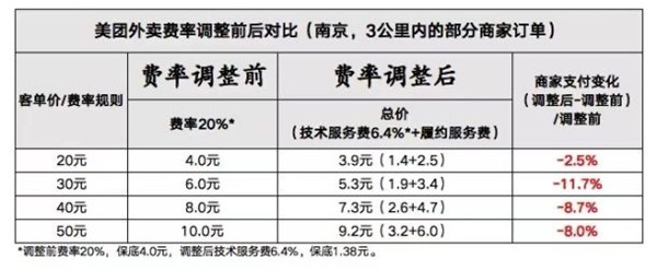 在長(zhǎng)沙,一位老長(zhǎng)沙口味湘菜的老板表示,因?yàn)榈赇?公里以內(nèi)近單占比達(dá)70%,所以費(fèi)率調(diào)整后,雖然有部分遠(yuǎn)距離訂單收費(fèi)增加,但多數(shù)近單降了,核算下來(lái)店鋪的總體成本降了。在鄭州,金水區(qū)升龍廣場(chǎng)經(jīng)營(yíng)灌湯燒餅的齊先生也表示,換了新費(fèi)率之后,3公里范圍內(nèi)訂單的傭金成本明顯減少,對(duì)他的成本降低有不少幫助。
