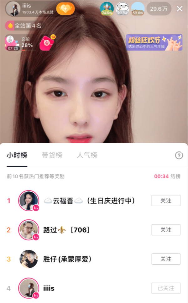 當(dāng)天接近凌晨時(shí),孫一寧一度登上抖音小時(shí)榜第四名,而當(dāng)晚的直播,她全程無(wú)連麥、無(wú)才藝展示甚至無(wú)表情,相比榜單前三位在直播間的“賣力”表現(xiàn),這樣的成績(jī)可謂得來(lái)全不費(fèi)功夫。