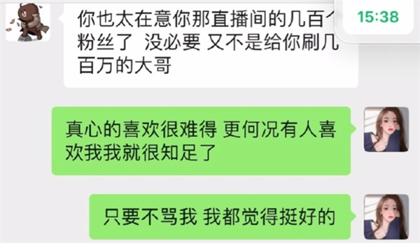 在王思聰一直勸說(shuō)其不要醉心直播,“我養(yǎng)你”時(shí),回答“有人喜歡就很知足”,側(cè)面樹立了熱愛工作的獨(dú)立形象。