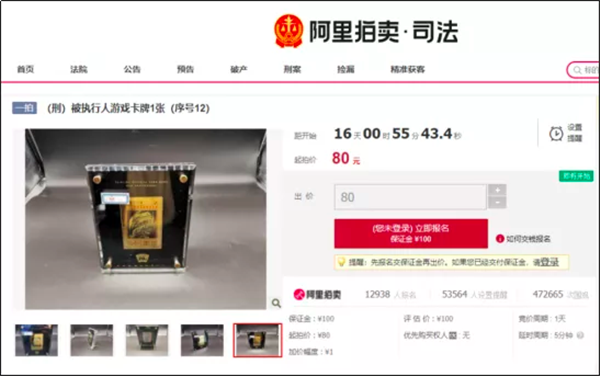 所以,法拍工作人員大概率對(duì)這張卡牌的價(jià)值“一無(wú)所知”,才會(huì)將其以80元的起拍價(jià)掛出。