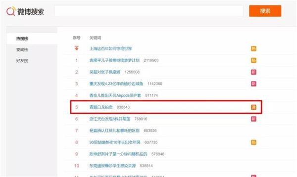 但這場(chǎng)圍獵青眼白龍“競(jìng)拍”的狂歡并未就此遏制住,反而很快沖進(jìn)熱搜前五,聚攏了更多吃瓜群眾前來(lái)圍觀。