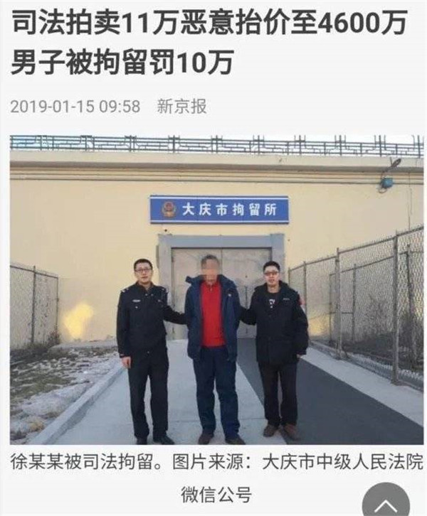 這并非沒有先例,2019年大慶市中級(jí)人民法院就曾對(duì)一位惡意競(jìng)買人徐某某做出處罰: