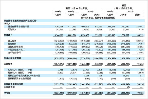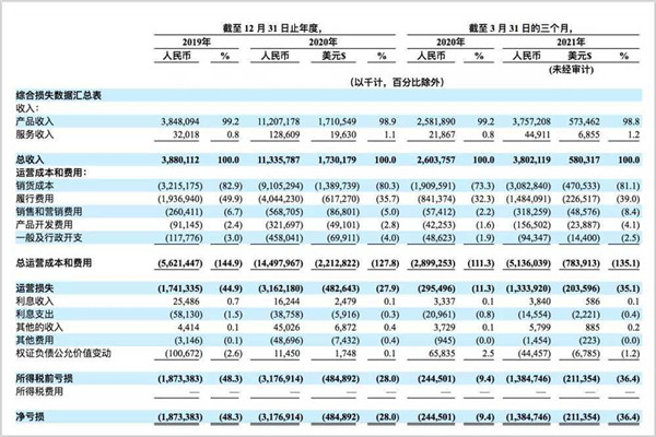 其凈虧損從2019年的18.73億元增長(zhǎng)到2020年的31.77億元。今年截至3月31日的前三個(gè)月,凈虧損從去年同期的2.45億元增至13.85億元。