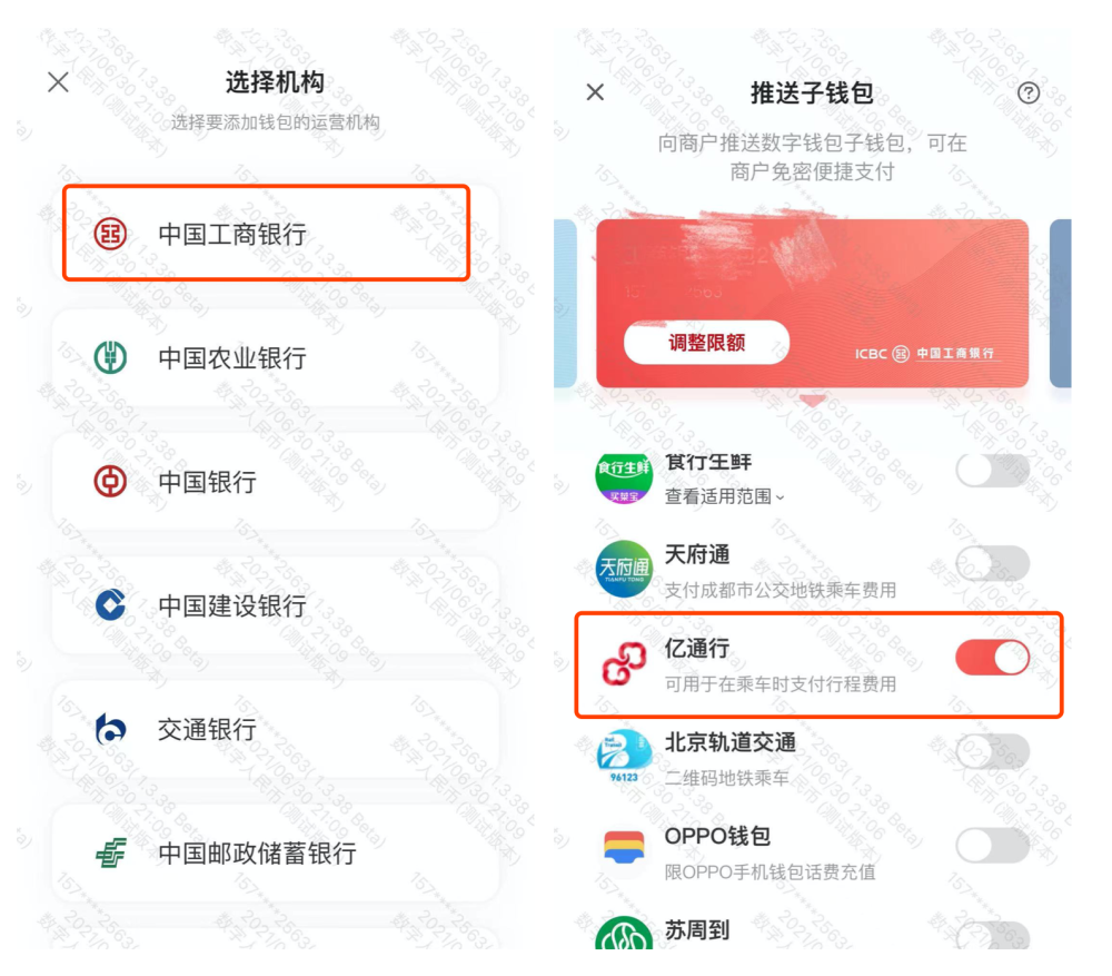 不過,界面新聞記者注意到,目前只有工行數(shù)字人民幣子錢包接入“億通行”,如未有工行卡,也可從其他五大行轉(zhuǎn)入,速度與普通轉(zhuǎn)賬無異。此外,僅“億通行”APP可開通數(shù)字人民幣支付,線下的自動購票機(jī)并未開通相關(guān)支付渠道。