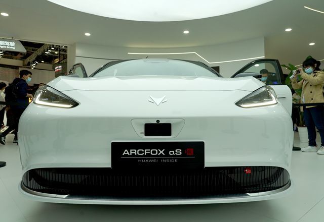 4月19日,華為Huawei ADS高階自動(dòng)駕駛系統(tǒng)展車(chē)在上海國(guó)際車(chē)展上亮相。新華社圖