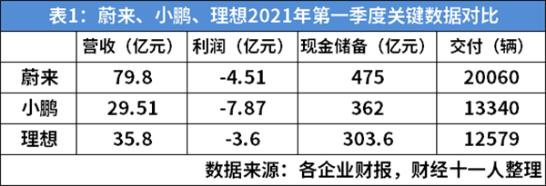 其實(shí)現(xiàn)在蔚小理三家的財(cái)務(wù)狀況都比較理想,2021年第一季度,三家雖然都在虧損,但現(xiàn)金儲(chǔ)備都在300億元以上(見表1),這種規(guī)模的現(xiàn)金儲(chǔ)備可以說(shuō)底氣十足了。但即便如此,融資腳步依然緊鑼密鼓,對(duì)于資金,造車新勢(shì)力永遠(yuǎn)饑渴。