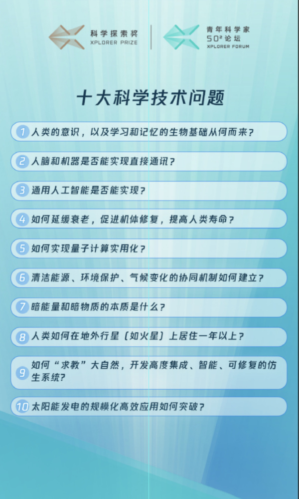 論壇發(fā)布了由100位中國頂尖青年科學(xué)家提出并投票產(chǎn)生的“十大科學(xué)技術(shù)問題”,這十個問題也代表了他們最前沿的科學(xué)探索和對未來科技發(fā)展趨勢的判斷。