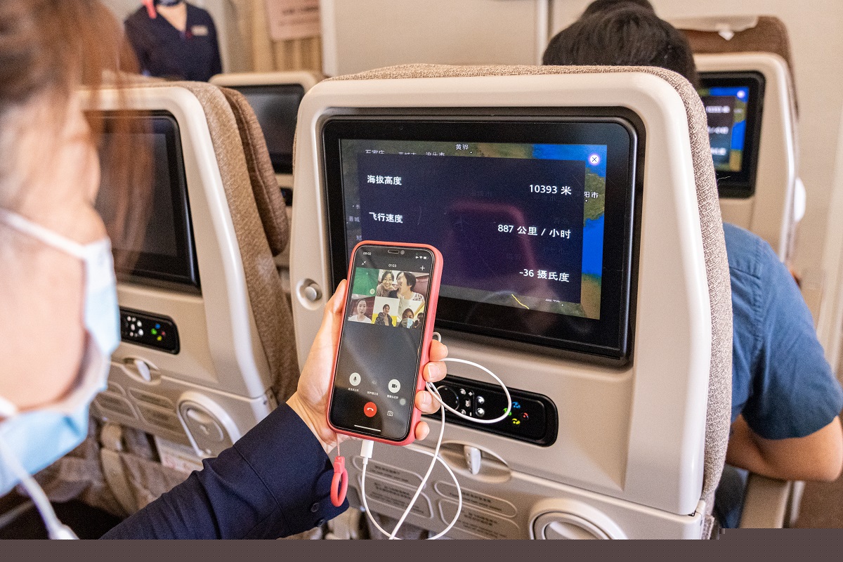 旅客在萬(wàn)米高空利用 MU5101 航班高速網(wǎng)絡(luò)與朋友們視頻通話(huà)