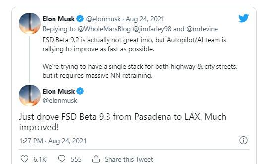 在周二的一條推文中,馬斯克說。“FSD 測(cè)試版 9.2 實(shí)際上不是很好,但自動(dòng)駕駛/人工智能團(tuán)隊(duì)正在團(tuán)結(jié)起來,盡可能快地改進(jìn)。我們正試圖同時(shí)為高速公路和城市街道提供單棧解決方案,但這需要大量的(神經(jīng)網(wǎng)絡(luò))再訓(xùn)練。”