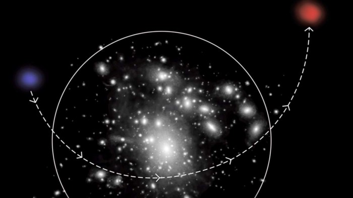 這種動量可能將矮星系旋轉(zhuǎn)成異常舒展的模式。UDG 被認為是在星系團內(nèi)演化的,就像大多數(shù)星系團一樣。然而,星系團內(nèi)的相互作用被認為是將矮星系彈出到浩瀚的太空中。這種拋射創(chuàng)造了一個"反沖"軌道,像回旋鏢一樣彎曲。同樣的過程也被認為剝離了星系內(nèi)部的氣體,使它們無法產(chǎn)生恒星。