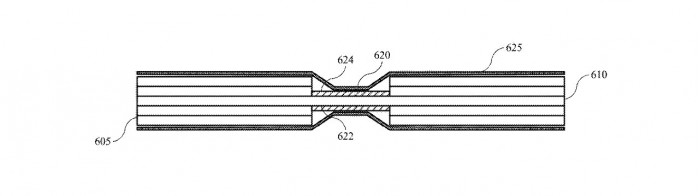 蘋果公司以前曾生產(chǎn)過不同形狀的電池,以便更好地利用空間,例如,2015 年的 MacBook,其中分立的不同的電池堆在一起,而這個(gè)新的建議是一個(gè)單一的電池單元,其特點(diǎn)是在它要彎曲的地方有一個(gè)更薄的部分,鉸鏈部分的特點(diǎn)是厚度小于第一個(gè)部分的厚度和第二個(gè)部分的厚度。