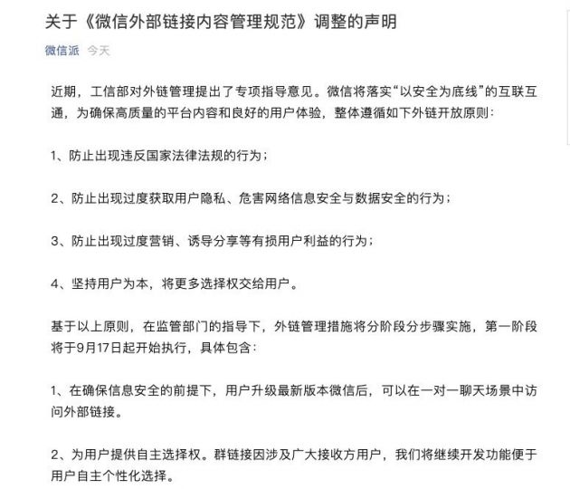 1、在確保信息安全的前提下,用戶升級(jí)最新版本微信后,可以在一對(duì)一聊天場(chǎng)景中訪問(wèn)外部鏈接。