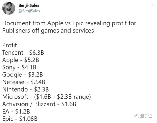 但從游戲分析師@Benji-Sales 公布的數(shù)據(jù)來(lái)看,蘋(píng)果公司的游戲利潤(rùn)同樣排在全球前列。