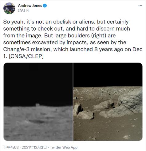 隨著月球車的抵近,物體的真實面目也將變得愈加清晰。目前最有可能的一種猜測,就是月球的這部分布滿了撞擊坑,且周邊散落著相當(dāng)多的大塊碎片。