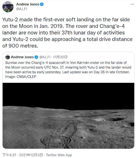 需要指出的是,目前玉兔二號已在月面上行駛了 840 米(2756 英尺)。但由于它主要依賴于太陽能驅(qū)動,所以會定期轉(zhuǎn)入休眠狀態(tài),然后在重見天日時繼續(xù)開展相關(guān)工作。
