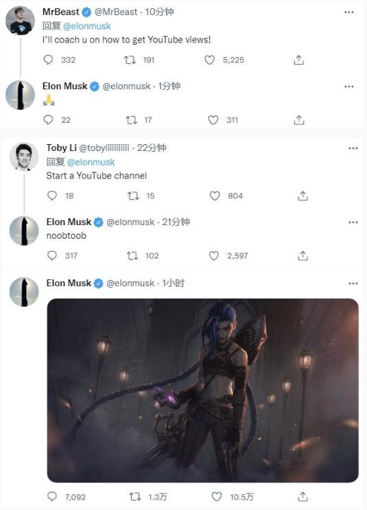 還有網(wǎng)友給他提建議,不如去 YouTube 做視頻或直播,但馬斯克表示自己干不了這個,技術(shù)太菜了。不過,他的粉絲中好像有 YouTuber 大佬表示自己可以出手幫他。