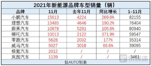 下周就要進(jìn)入 2022 年了。從數(shù)據(jù)上回顧年末的幾個(gè)月,新能源車(chē)銷(xiāo)量猛增,11 月可以用“瘋狂”來(lái)形容。乘聯(lián)會(huì)發(fā)布信息統(tǒng)計(jì),11 月,新能源乘用車(chē)銷(xiāo)量為 42.9 萬(wàn)輛,環(huán)比增長(zhǎng) 17.9%,同比增長(zhǎng) 131.7%;1-11 月累計(jì)銷(xiāo)量為 280.7 萬(wàn)輛,同比增長(zhǎng) 190.2%,除了特斯拉賣(mài)出 52859 輛之外,造車(chē)新勢(shì)力也迎來(lái)了集體爆發(fā)。