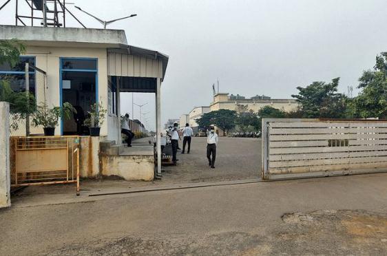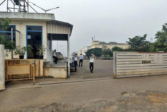 圖2:富士康印度分公司工廠正被關(guān)閉,入口處可以看到私人保安