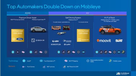 1 月 4 日,Mobileye 與大眾集團(tuán)、福特和極氪共同宣布多項圍繞提升全球駕駛員和乘客體驗的最新戰(zhàn)略合作。此外,Mobileye 還展示了首款專為 L4 自動駕駛汽車打造的自動駕駛汽車集成芯片 EyeQ Ultra。
