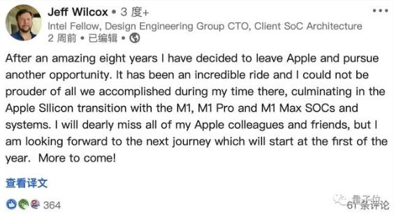 杰夫·威爾科克斯一共在蘋果干了八年,打造了M1、M1 Pro 和 M1 Max芯片,在幫助蘋果從 Intel 芯片向 Apple Silicon 過渡的過程中功不可沒。
