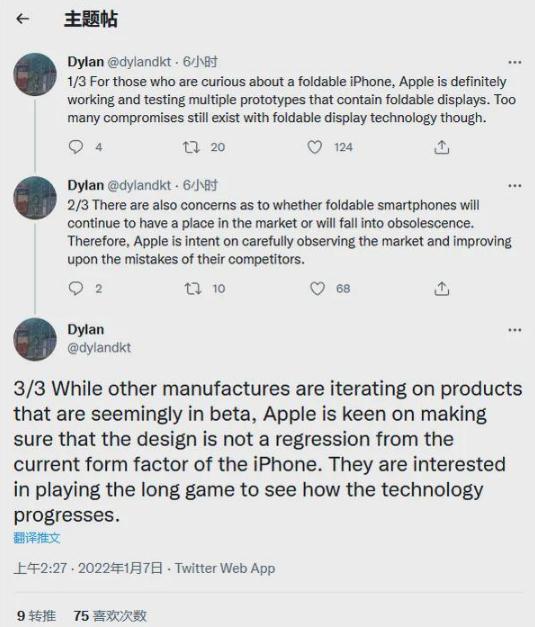 Dylandkt 在 Twitter 上說,蘋果正在研究未來可能的設(shè)備,但可折疊顯示技術(shù)還不夠先進,仍有太多的“妥協(xié)”需要處理。在發(fā)布可折疊 iPhone 之前,蘋果希望確定可折疊設(shè)計不是“iPhone當前外形的倒退”,如果因為折疊功能而出現(xiàn)顯示屏壽命和質(zhì)量問題,這種情況確實可能發(fā)生。Dylandkt的評論表明,蘋果對可折疊智能手機技術(shù)繼續(xù)采取觀望態(tài)度,但其他一些傳言表明,蘋果可能最快在 2023 年發(fā)布可折疊 iPhone。