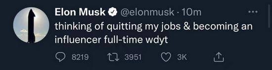 去年 12 月初,熱愛社交的他在 Twitter 上表示,自己正考慮辭職做一名全職網(wǎng)紅,并公開詢問網(wǎng)友的意見。