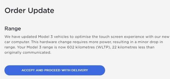 不過,雖然新的處理器帶來了更加流暢快速的車機(jī)使用體驗(yàn),但根據(jù)特斯拉官方的說法,新的車機(jī)硬件會(huì)對(duì)續(xù)航造成小幅影響。根據(jù)海外官方顯示,海外市場 Model 3 后驅(qū)版在使用 AMD 芯片后,搭載 18 英寸輪輞車型的 WLTP 續(xù)航里程從 637 公里降至 626 公里,搭載 19 英寸輪輞車型的續(xù)航里程由 614 公里降至 602 公里。同時(shí),根據(jù)海外用戶提供的訂單更新消息來看,續(xù)航降低主要是由于全新車機(jī)硬件優(yōu)化了觸摸屏體驗(yàn),這種硬件變動(dòng)需要更多功率,所以會(huì)導(dǎo)致續(xù)航略有下降。不過,目前官網(wǎng)并未對(duì)續(xù)航里程信息進(jìn)行調(diào)整。