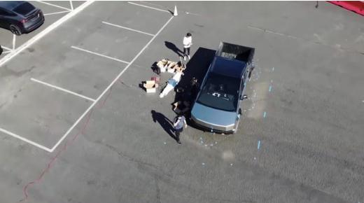 Cybertruck 在弗里蒙特工廠的測試場附近被發(fā)現(xiàn),暗示了其身份。在那輛電動皮卡附近依稀可以看到幾個人,在它周圍到處修修補補。