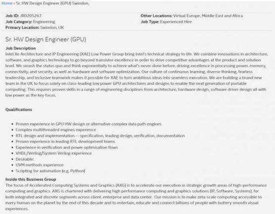 英特爾在該公司的筆記本處理器中采用了 Xe-LP 架構(gòu)。然而,為自己的設(shè)計(jì)提供新的節(jié)能 GPU 架構(gòu)的概念也存在這一可能性,這些設(shè)計(jì)正在計(jì)劃在五年或更長時(shí)間內(nèi)實(shí)施,尋求有經(jīng)驗(yàn)的員工對(duì)他們是有利的。