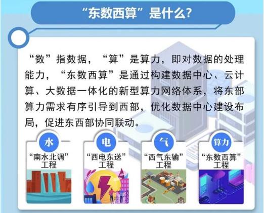 所謂“東數(shù)西算”,就是指通過構(gòu)建數(shù)據(jù)中心、云計(jì)算、大數(shù)據(jù)一體化的新型算力網(wǎng)絡(luò)體系,將東部算力需求有序引導(dǎo)到西部,優(yōu)化數(shù)據(jù)中心建設(shè)布局,促進(jìn)東西部協(xié)同聯(lián)動。簡單地說,就是讓西部的算力資源更充分地支撐東部數(shù)據(jù)的運(yùn)算,更好為數(shù)字化發(fā)展賦能。