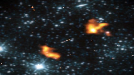 研究人員稱,“阿爾庫俄紐斯”星系是龐大而典型的射電星系。射電星系由一個宿主星系(即圍繞含有超大質(zhì)量黑洞的星系核的恒星團)以及從星系中心噴出的巨大噴流和裂片組成。星系中心的黑洞吞噬大量物質(zhì),然后將其吐出——噴射出兩股巨大的等離子體,這些等離子體以接近光速的速度移動。旅行數(shù)百萬光年后,等離子體束的速度變慢,擴散成羽流,這些羽流以射電電波的形式發(fā)出光。