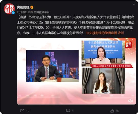 全國人大代表、格力電器董事長兼總裁董明珠接受了央視財經(jīng)的采訪。對于是否考慮退休生活,董明珠回應(yīng)稱:“沒考慮,因為現(xiàn)在不是考慮這個事的時候,我一考慮就懈怠了。”